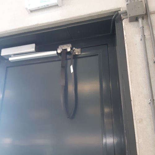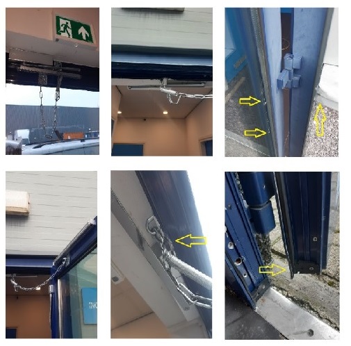 Haal er een specialist bij die deur kan repareren en vraag of er een stormbandbegrenzer kan worden gemonteerd.